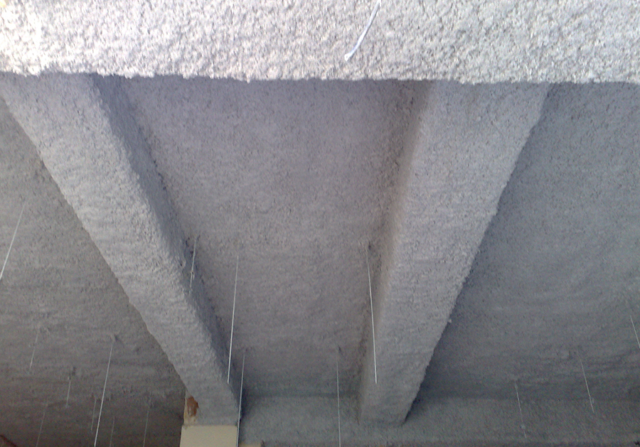 Le flocage consiste à projeter sous pression un mélange de fibres minérales et de liants sur les surfaces à protéger.